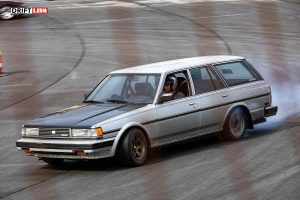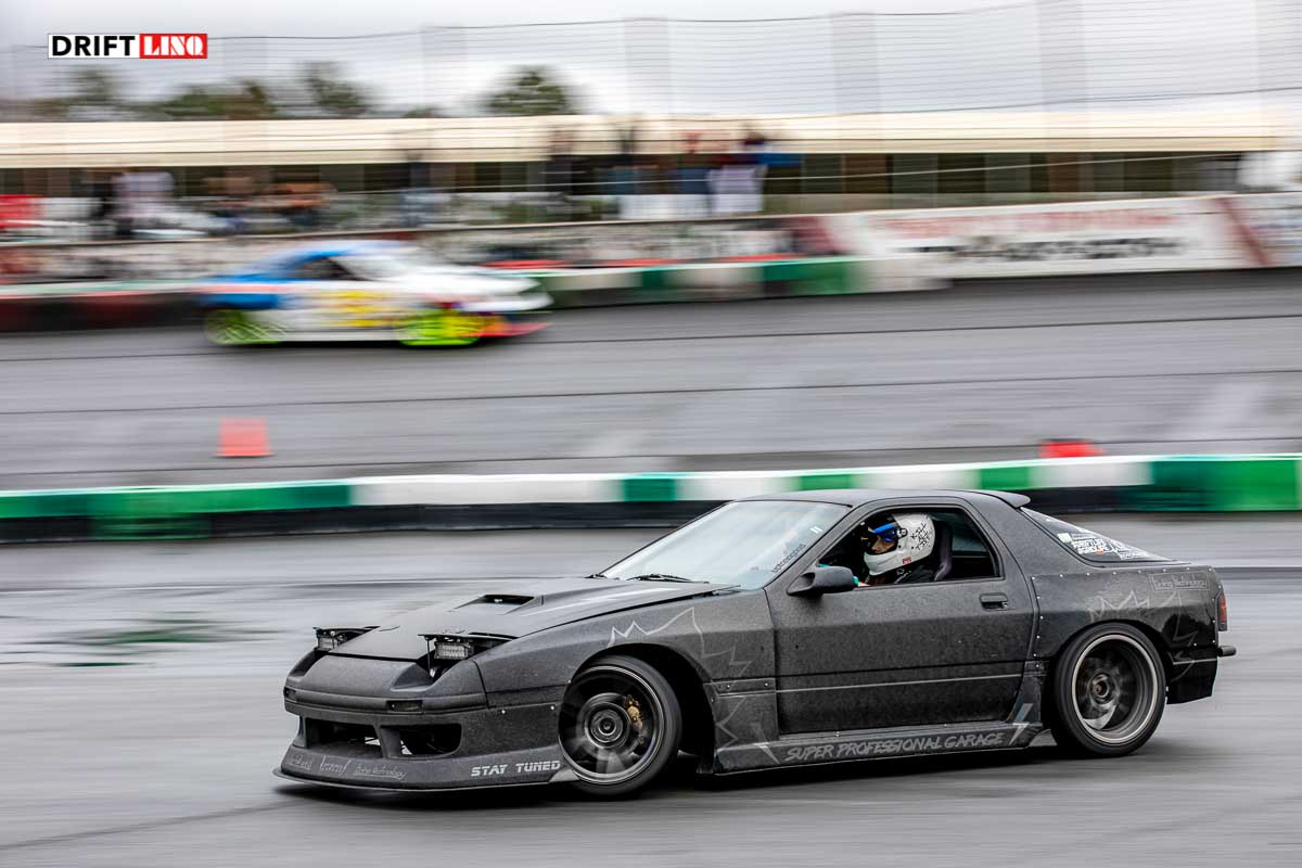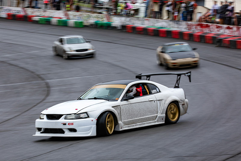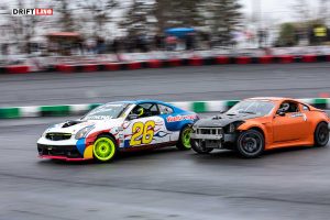 Several awesome drivers came out in the rain and they did not disappoint, some of the favorites like Nick Noback and Sherriff Dan also came out to shred some tires in the rain. Nick Noback drove his yellow BMW and Sherrif Dan of course chased these guys down in his police Mustang. Nick Noback banged out several heats with door to door action on Dan the Sherriff and Dustin Miles. Sheila Renee, dating Dustin Miles, chased these guys down hard in her Toyota as well! It is incredible to watch her and her boyfriend drive together on track as both have an equally aggressive passion for drifting!
